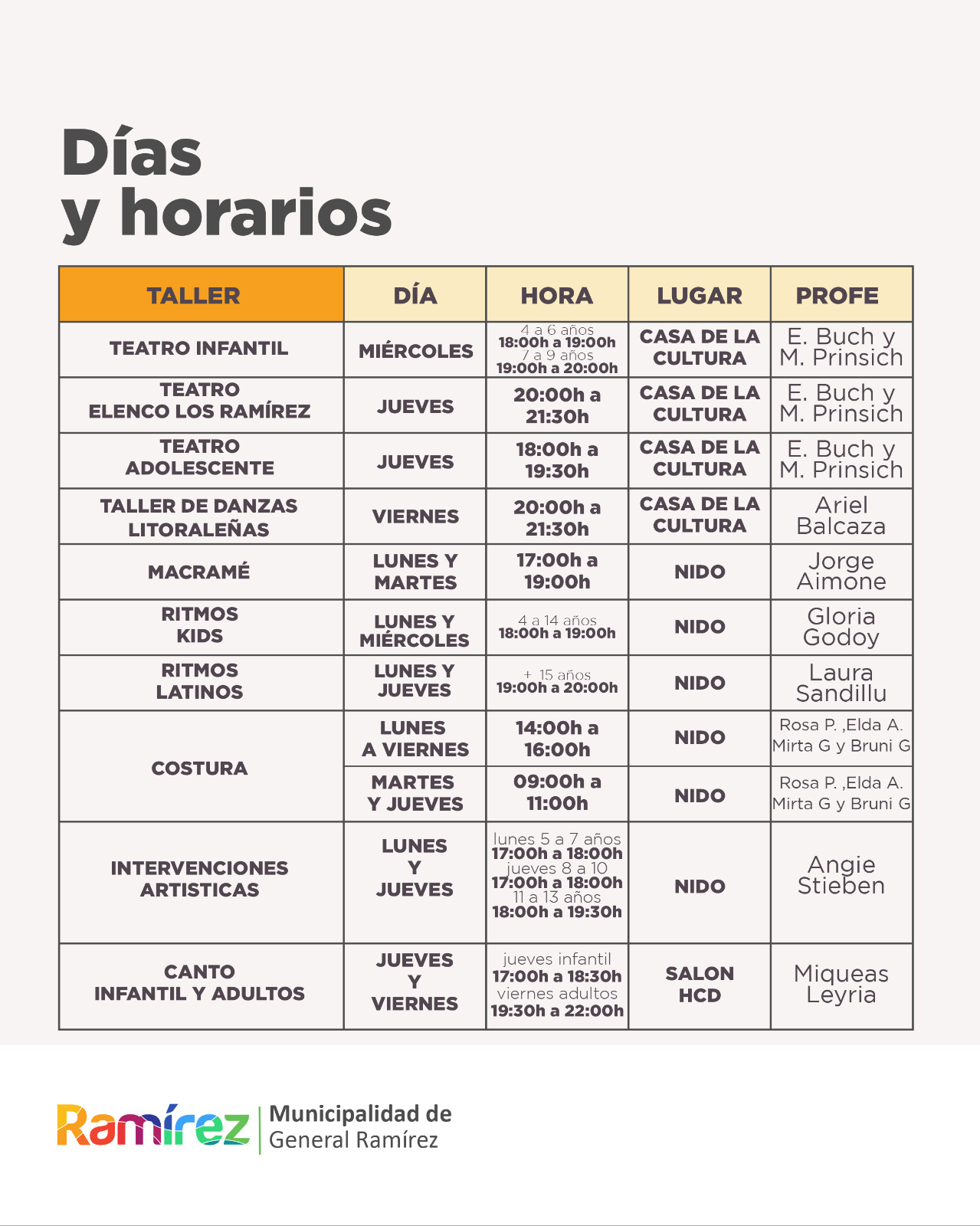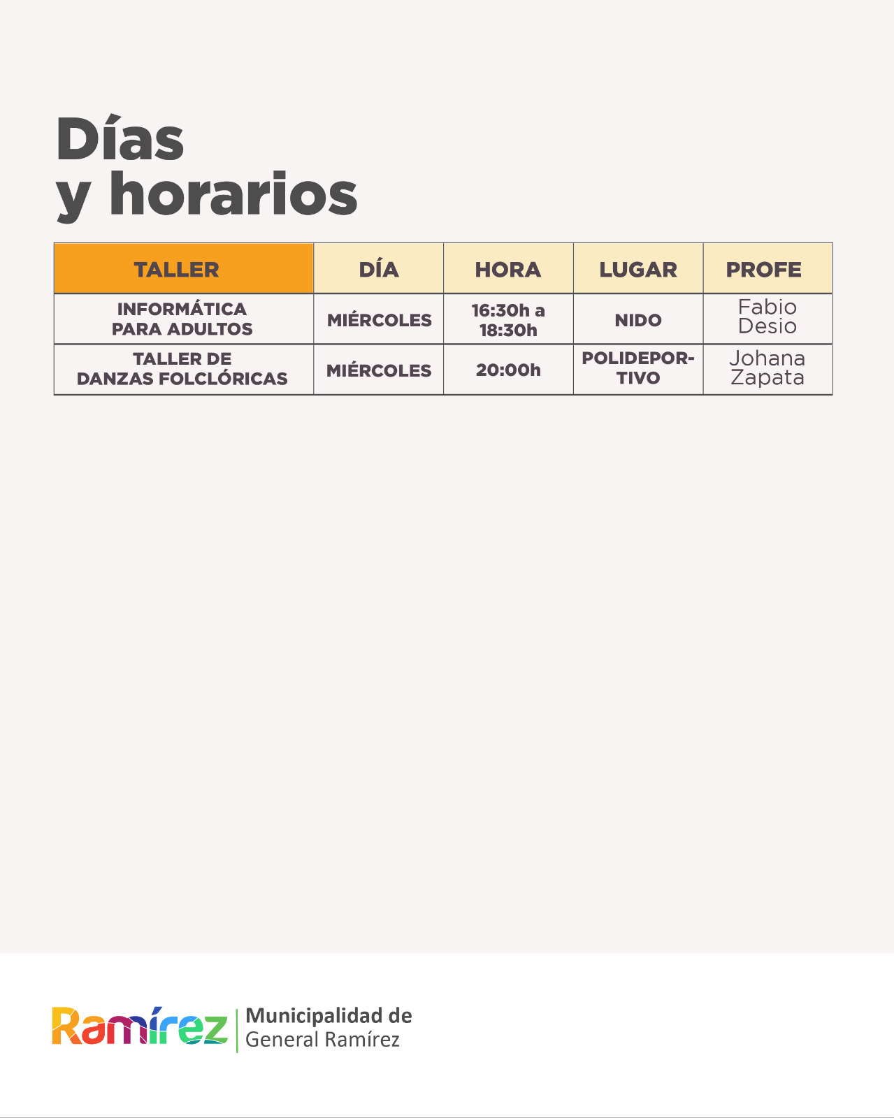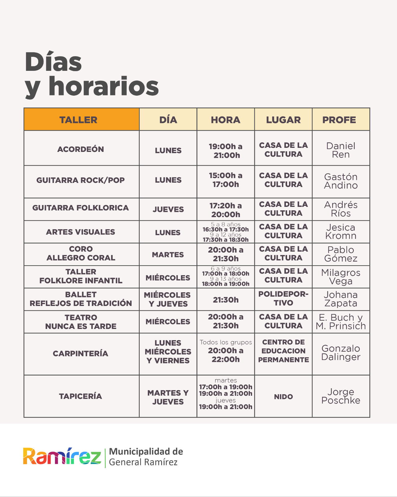 Como cada año, en General Ramírez se abrió la inscripción para los talleres municipales culturales y de oficios 2025.