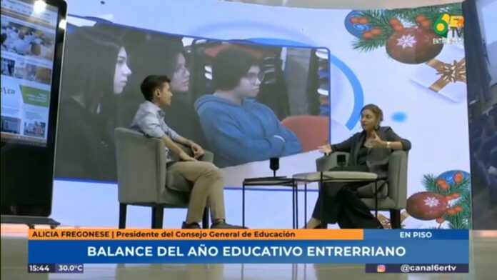 La presidente del Consejo General de Educación, Alicia Fregonese, realizó un balance de sus 12 meses de gestión al frente del CGE y del año educativo entrerriano. En La Hora del 6 por Canal 6 ERTV, consideró que “la educación es la base para la construcción de cualquier sociedad más justa y equitativa”, y en ese marco, sobre la actual gestión provincial, aseguró: “Es una política de Estado prioritaria para el gobernador y todo el gabinete. Durante este año algo que funcionó fue la interacción entre diferentes ministerios y reparticiones para abordar y mejorar la educación; desde articular más con Infraestructura para la realización de pequeñas refacciones llegando ya a unas 150 escuelas en el marco de la Emergencia Edilicia, hasta con la Policía para evitar robos, con Desarrollo Humano en la capacitación en primera infancia y así podría seguir enumerando”, indicó.