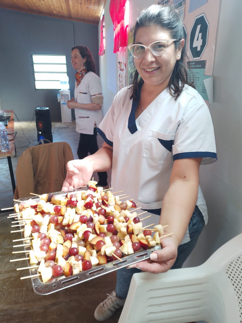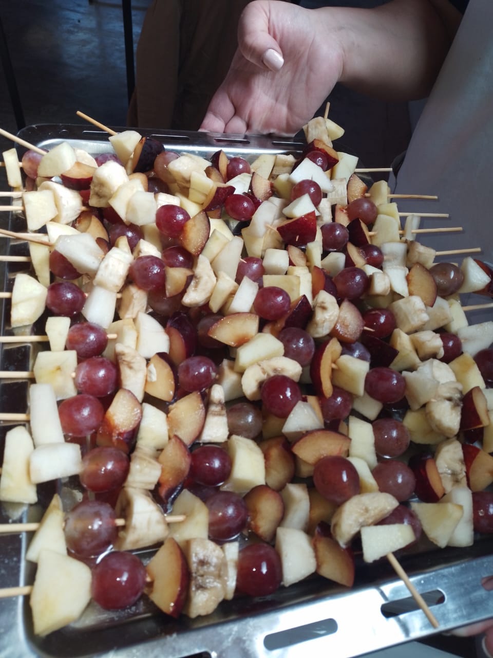 También compartieron una colación saludable: brochetts de frutas, reconociendo que se puede comer sano y muy rico.