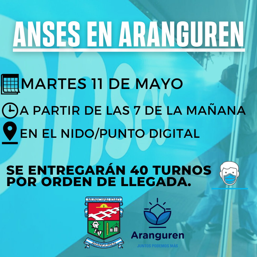 Este martes 11 de mayo, representantes de la Administración Nacional de Seguridad Social –Anses- estarán en Aranguren.