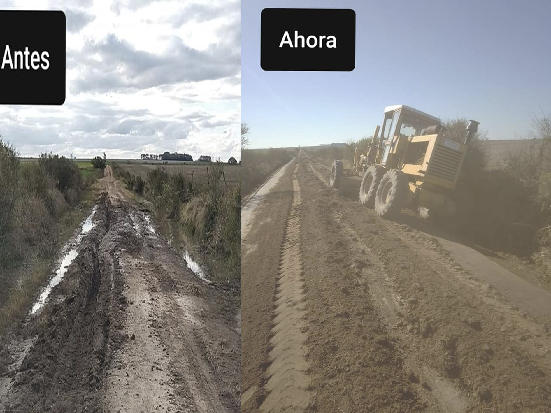 «Antes y ahora» expresaron, junto a una imagen, desde la Junta de Gobierno de la localidad de Isletas para dar cuenta de las obras viales con recursos propios.