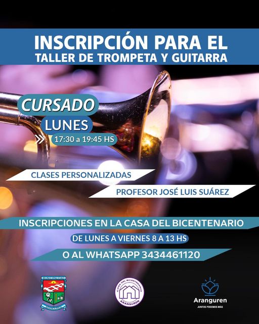 Desde la municipalidad de Aranguren brindarán el taller de trompeta y guitarra, que estará a cargo del profesor José Luis Suárez.