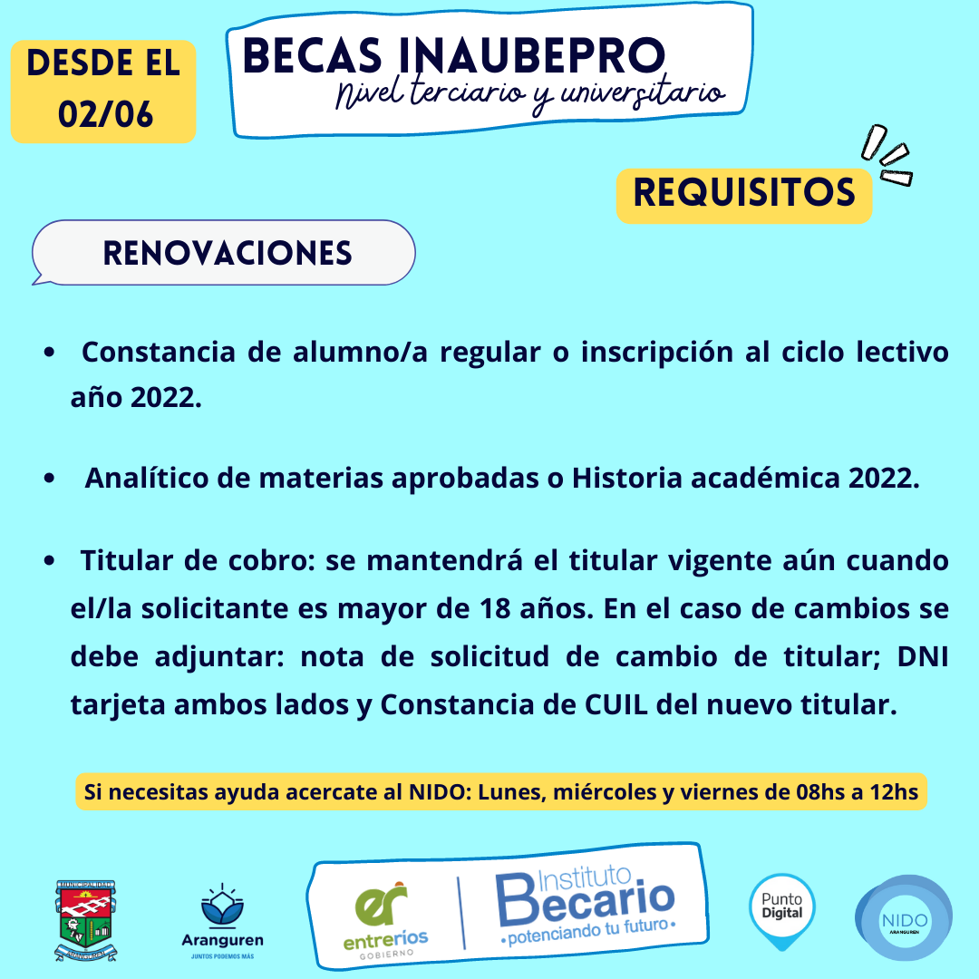 Es tanto para solicitudes nuevas y renovaciones. En Aranguren, quienes necesiten ayuda pueden acercarse al NIDO los lunes, miércoles y viernes de 8 a 12.