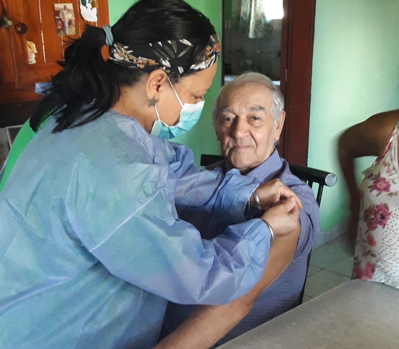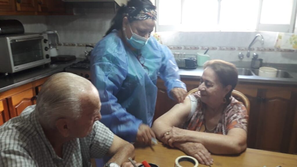 La inmunización está a cargo del personal del Centro de Salud, Gobernador Laurencena con la colaboración del Área de Personas Adultas Mayores de la Municipalidad, quienes concurren a los domicilios de los adultos mayores que se inscribieron previamente de manera online.