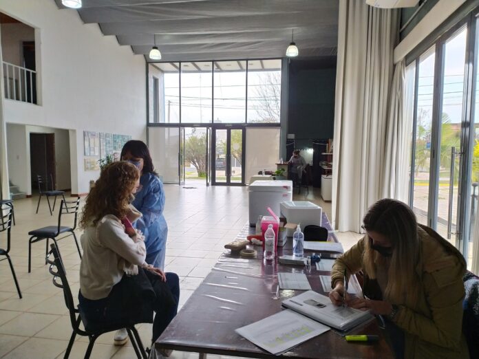 En la localidad de Aranguren continúa a buen ritmo la campaña de inmunización contra el coronavirus desarrollada desde el Centro de Salud, Gobernador Laurencena.