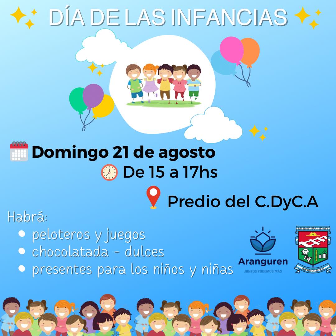 Este domingo 21 de agosto se celebra el Día de las Infancias en Aranguren. Será de 15 a 17 en el predio del Club Deportivo y Cultura Aranguren.