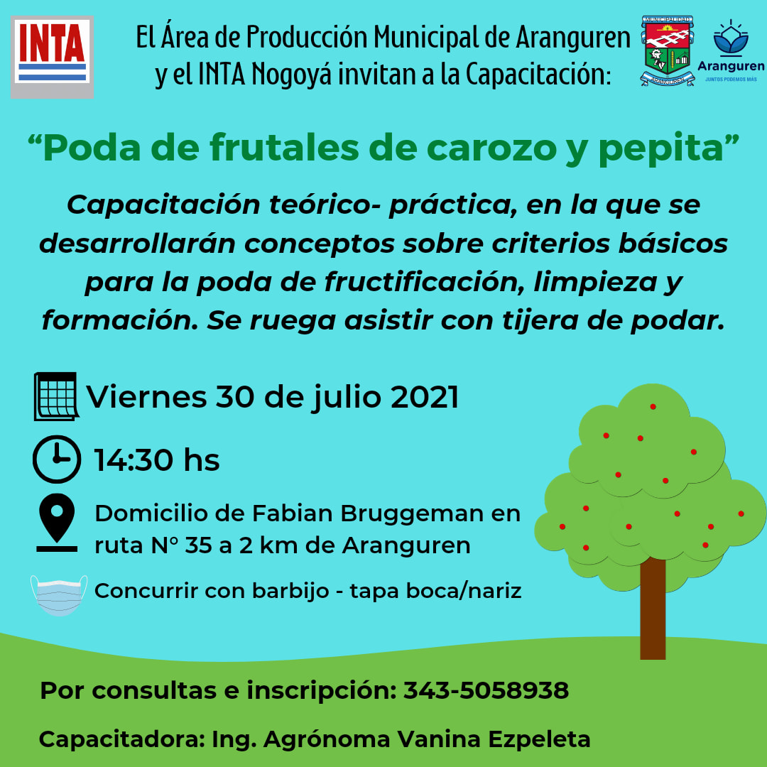 El Área de Producción Municipal de Aranguren y el INTA Nogoyá invitan a la capacitación