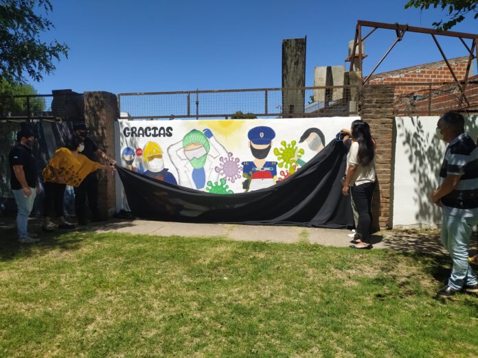 En la localidad de Aranguren inauguraron un mural de reconocimiento y gratitud para el personal de salud, policía, tránsito y bomberos por el trabajo que realizaron durante el 2020, en el marco de la pandemia de covid-19.