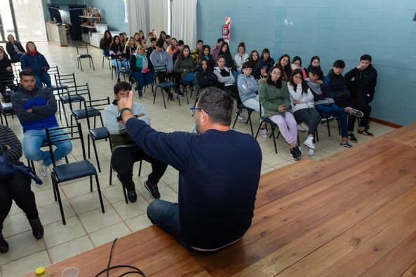 En Aranguren y tal como estaba previsto, se llevó a cabo la charla sobre la prevención en el consumo problemático, a cargo de Sebastián Mascherano -hermano de Javier-.