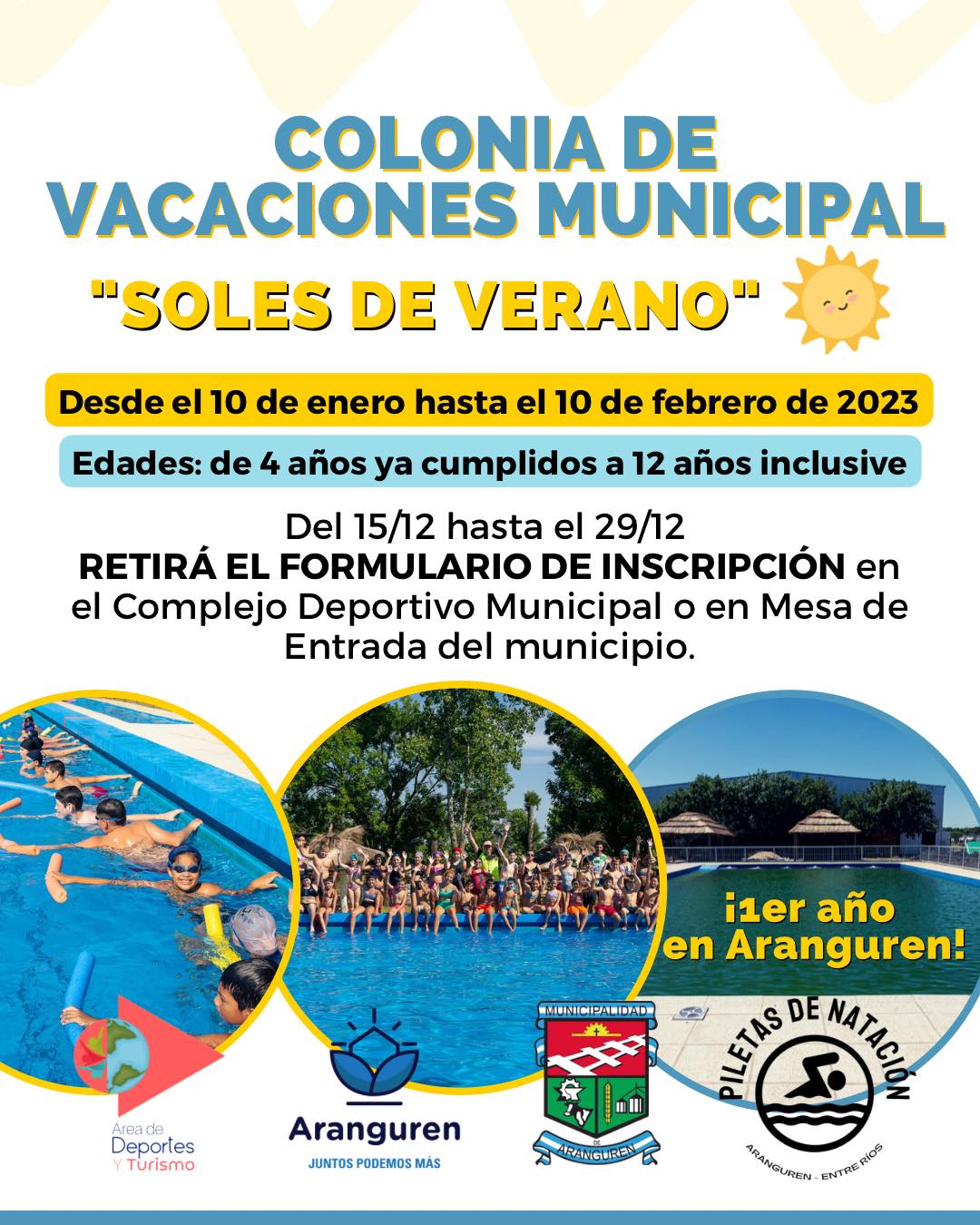 La colonia de vacaciones se extenderá desde el 10 de enero hasta el 10 de febrero de 2023 para niños y niñas de 4 años ya cumplidos a 12 años inclusive.