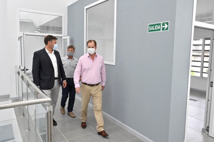 “Estamos muy contentos porque se han terminado las obras del edificio nuevo del Instituto Becario Autárquico Provincial, que era una demanda de hace mucho tiempo”, dijo el gobernador durante la recorrida que realizó este martes junto al ministro de Planeamiento, Marcelo Richard, y al director Ejecutivo del Becario, Sebastián Bértoli.