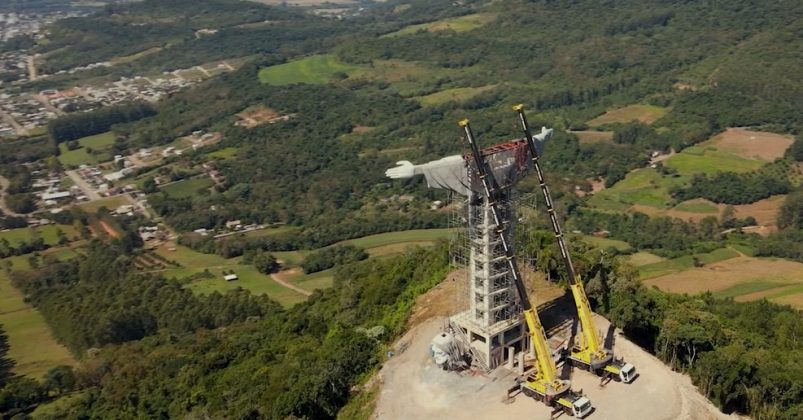 Esta semana fueron erigidos los brazos y la cabeza de la estatua, cuya construcción se inició en 2019: «Con certeza es un día de fiesta, de devoción», celebró el avance del proyecto en sus redes sociales Gilson Conzatti, concejal e hijo de Adroaldo Conzatti, político local que acogió la idea del emplazamiento.