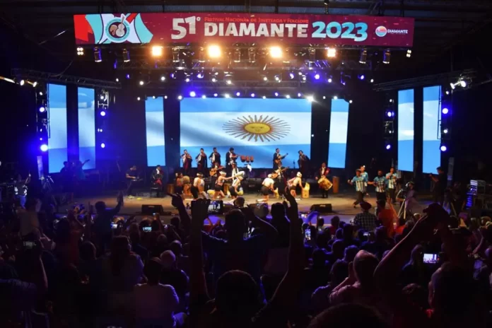A su turno, Diana Zapata, la cantora de las chamarritas, le puso ritmo a la noche representando con su voz a las mujeres entrerrianas. La calandria entrerriana desplegó en su repertorio la música del litoral junto a otros ritmos que reivindican nuestra tradición y nuestras raíces.