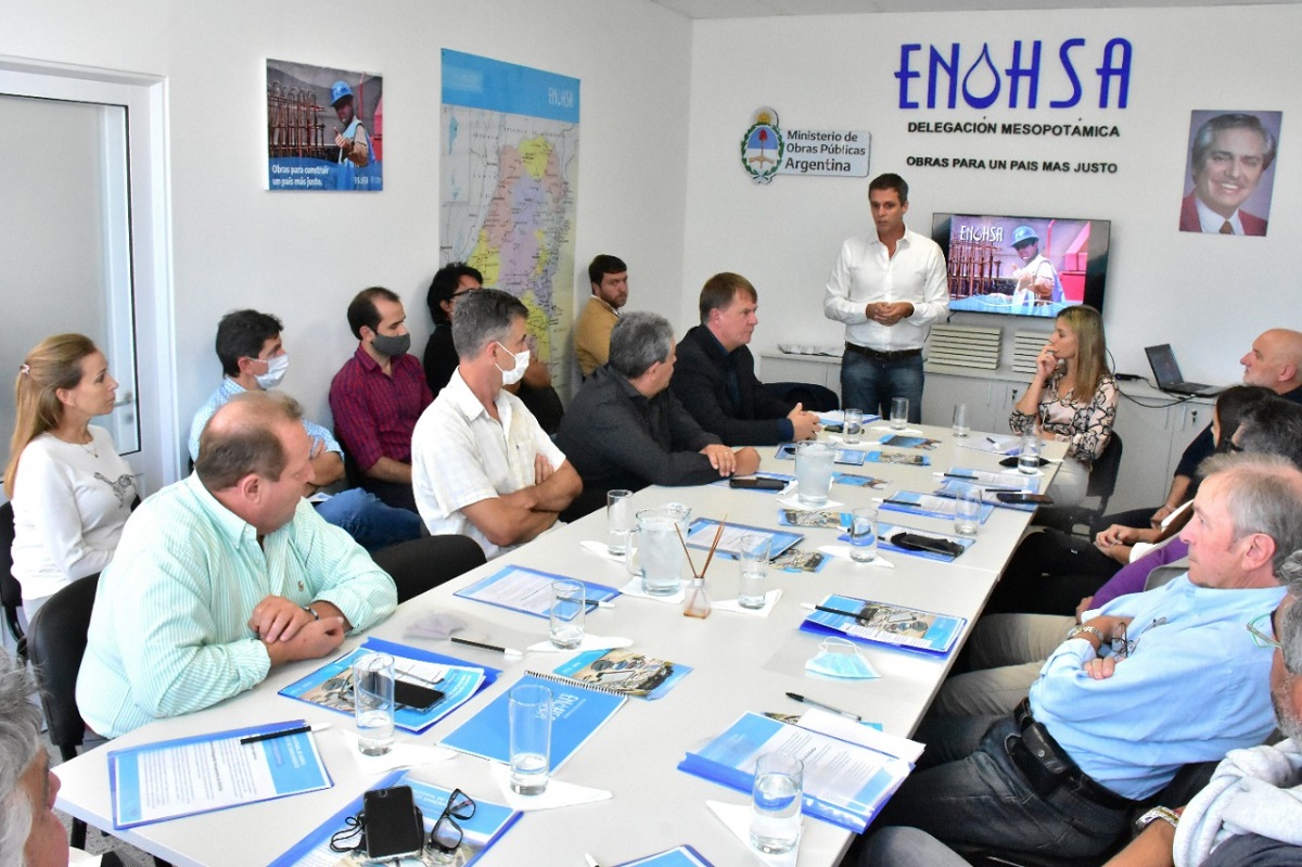 Participaron del encuentro el titular del Distrito Entre Ríos de Vialidad Nacional, Daniel Koch; el gerente de la Delegación Mesopotámica de ENOHSA, Carlos Torres; el secretario General de UOCRA Entre Ríos, Walter Doronzoro; miembros del equipo entrerriano de ENOHSA y empresarios de la construcción.