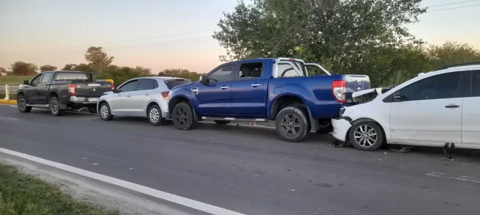 El Subjefe de la Jefatura Departamental Diamante, Marcelo Lell, precisóque «fue un accidente en cadena, a la altura del Km. 19, protagonizado por dos camionetas y dos automóviles».
