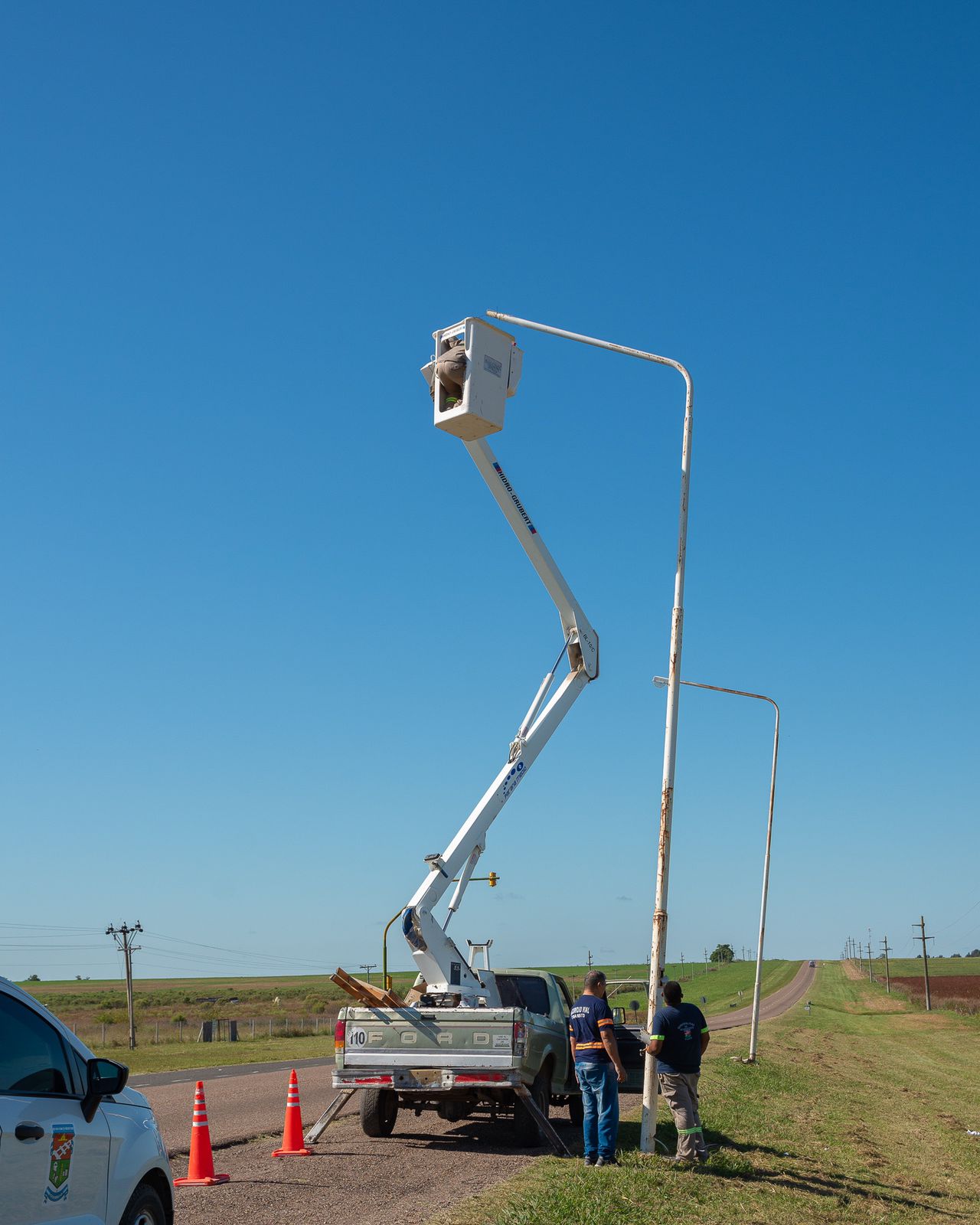 En la Ruta Nacional Nº 12, a la altura de la localidad de Aranguren, se colocaron nuevas luminarias que permiten mejorar la seguridad vial del acceso principal a esa ciudad del departamento Nogoyá.