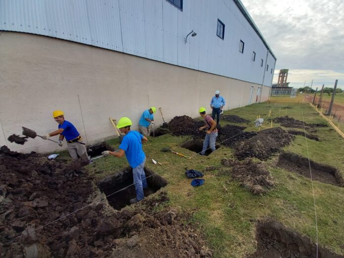 Para esta primera etapa, que se inició el 1° de marzo, se realizó la excavación y llenado de bases de hormigón armado, continuando luego con las vigas de encadenado.
