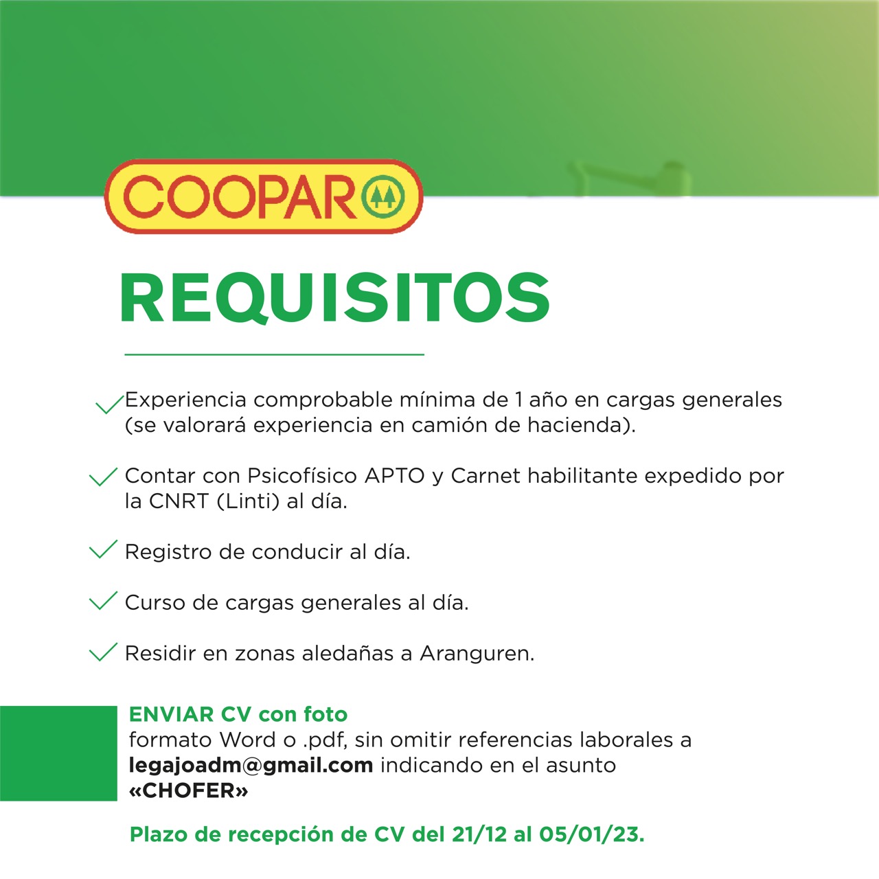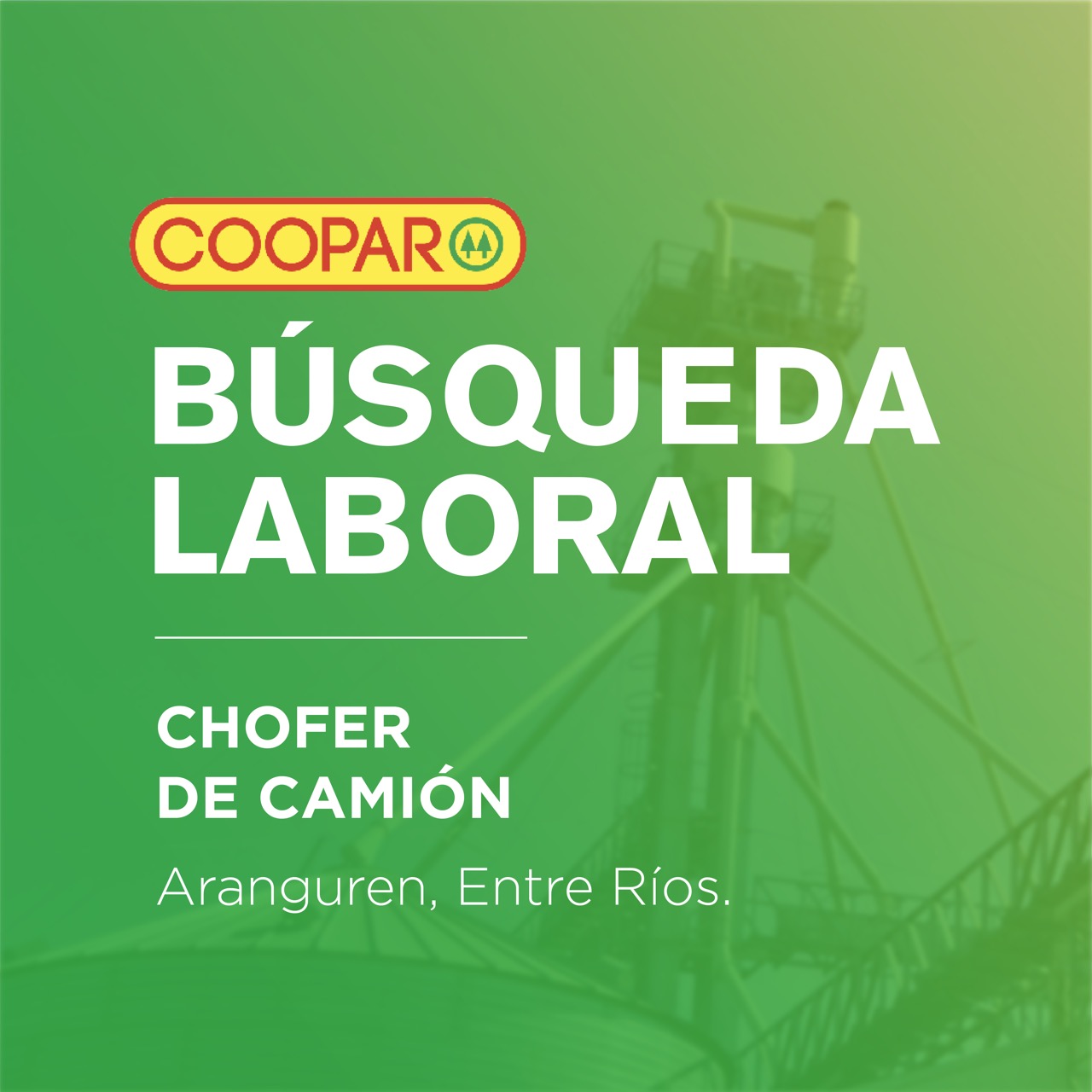 Cooperativa entrerriana busca a un chofer de camión. Se trata de Cooperativa Agrícola Ganadera y Servicios Públicos Aranguren Limitada -Coopar-.