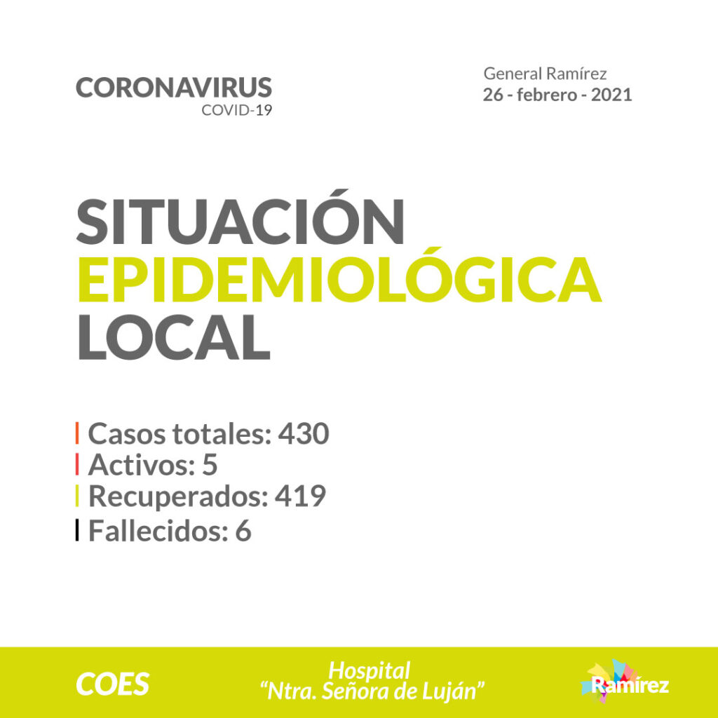 Según datos proporcionados por el sistema de salud a través del Hospital, Nuestra Señora de Luján, en General Ramírez se han sumado cuatro casos de Covid-19 y hubo tres altas desde el anterior informe.