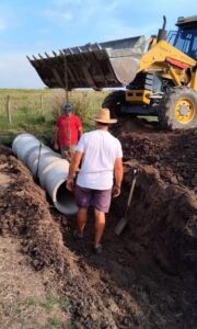 En ese marco, desde la Junta de Gobierno local, en las últimas semanas han realizado diferentes tareas como la colocación de tubos de alcantarilla en un camino aledaño a la Ruta Provincial N°40.
