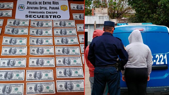 Un hombre y una mujer de 20 y 19 años, respectivamente, trataron de realizar un intento de estafa con dólares falsos en una relojería radicada en el centro de Crespo, en horas del mediodía del miércoles.