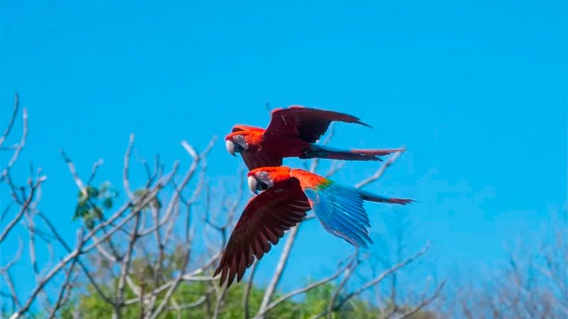 Los guacamayos rojos comenzaron a regresar al Iberá a partir de un proyecto de Rewilding iniciado en 2015, luego de 150 años de extinción total.