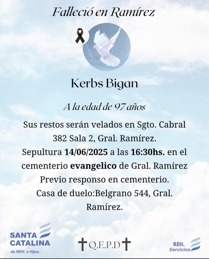 Falleció en General Ramírez a los 97 años, Bigan Kerbs.