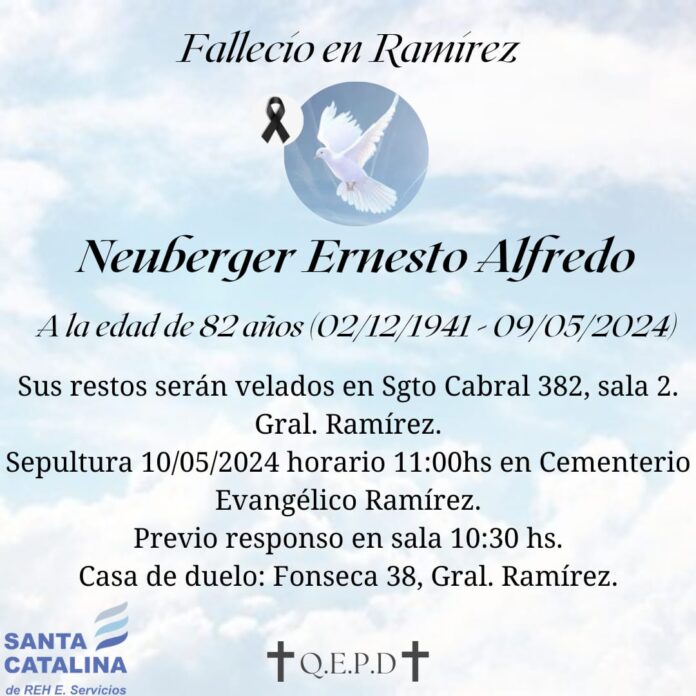 Falleció en General Ramírez a la edad de 82 años, Ernesto Alfredo Neuberger.