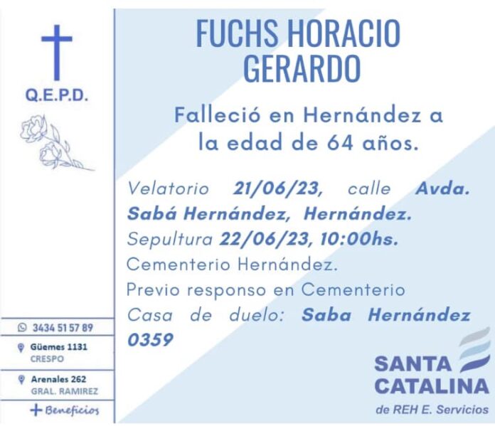 Falleció en Hernández a los 64 años, Horacio Gerardo Fuchs.