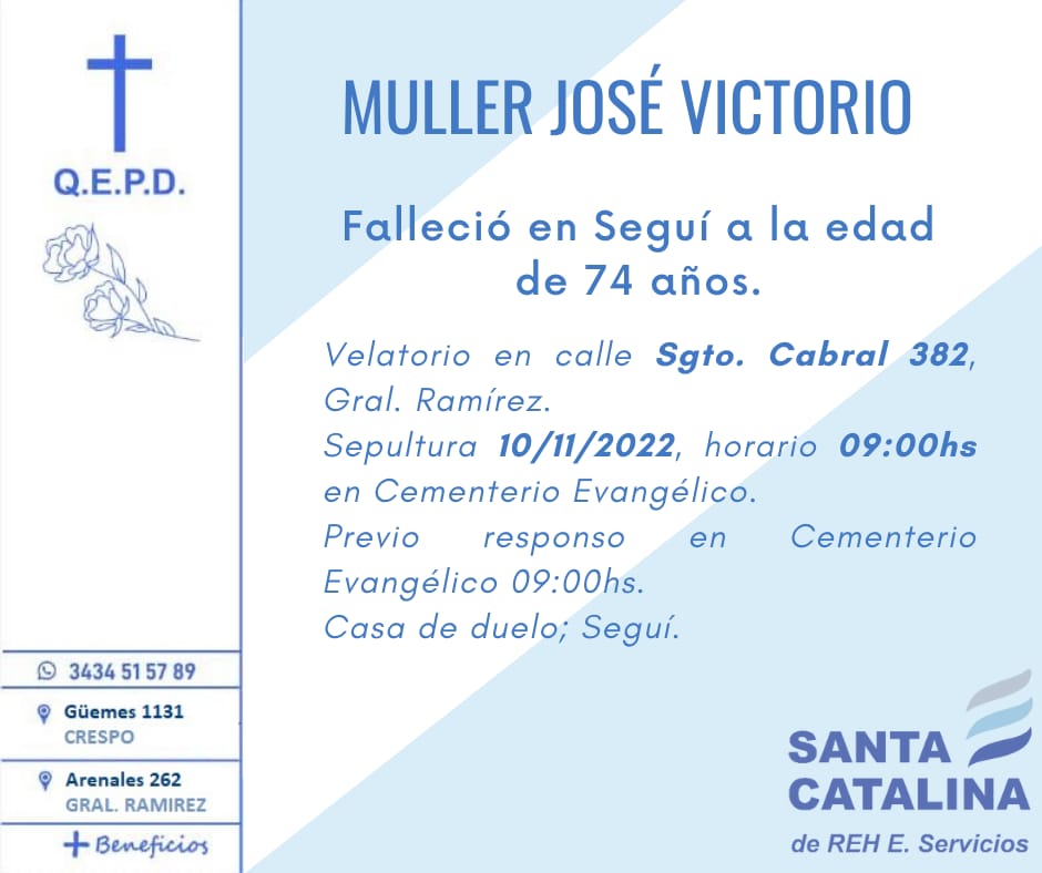 Falleció en Seguí a los 74 años, José Victorio Müller.