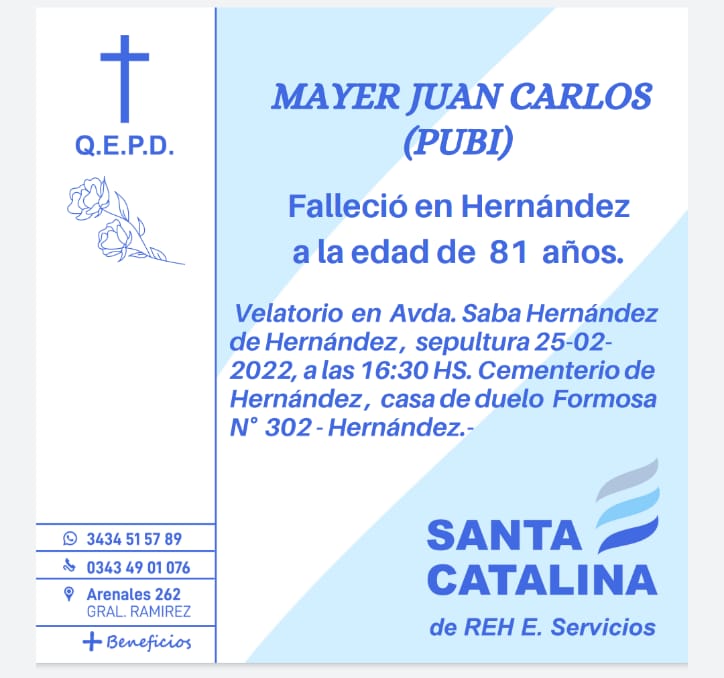 Falleció en Hernández a los 81 años Juan Carlos Mayer «Pubi».