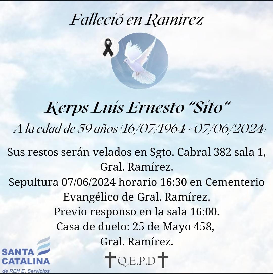 Falleció en General Ramírez a la edad de 59 años, Luis Ernesto «Sito» Kerps.