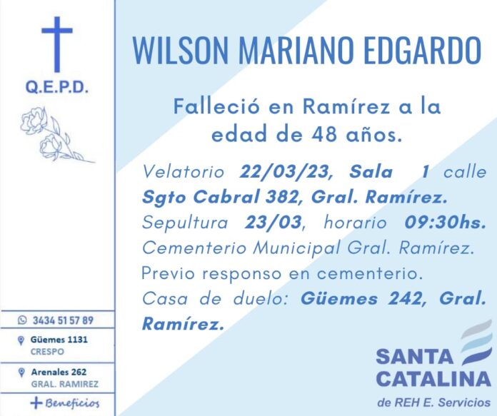 Falleció en General Ramírez a los 48 años, Mariano Edgardo Wilson.
