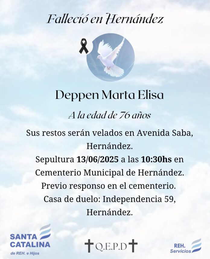 Falleció en Hernández a los 76 años, Marta Elisa Deppen.