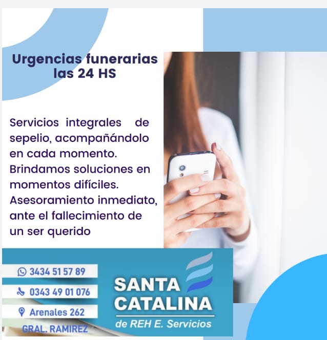 Sus restos son velados en sala 2, de calle Sargento Cabral 382 de General Ramírez y serán sepultados este viernes 26 en el Cementerio Municipal, a las 11.00, previo responso en la sala a las 10.30.
