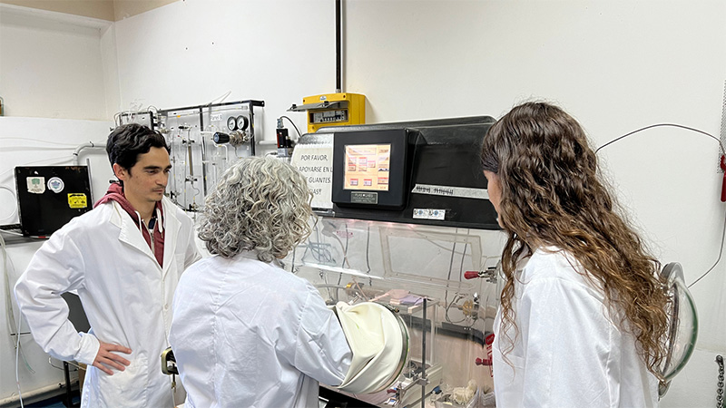 “Ellos han ganado experiencia en la generación de materiales para el ánodo y el cátodo de la batería, pero para cerrar el circuito hace falta el electrolito. Para hacerlo hay que mezclar hexafluorofosfato de litio con unos carbonatos. Para un primer abastecimiento, la planta necesita dos toneladas de esta sal de litio, que solo es producida por los países asiáticos. Pero por la alta demanda, en este momento falta stock. De ahí surge la necesidad de producirla en la Argentina y fue entonces que sumaron a la CNEA al proyecto”, detalla la jefa del Departamento Fisicoquímica y Control de Calidad del Complejo Tecnológico Pilcaniyeu (CTP) de la CNEA, la doctora en Química Ana Bohé.