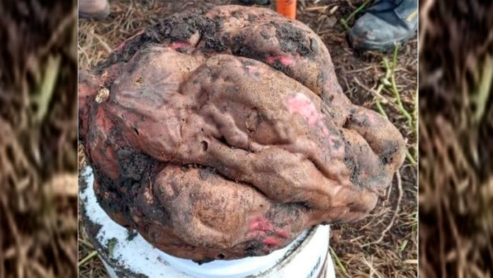 En la primera cosecha de ejemplares de hortalizas orgánicas pertenecientes a la producción de la Huerta Escuela Municipal, sorprendió el tamaño de las batatas y en especial, un ejemplar que pesó 4,8 kilogramos. Desde el campo de cultivo, se tomaron las imágenes de lo producido.