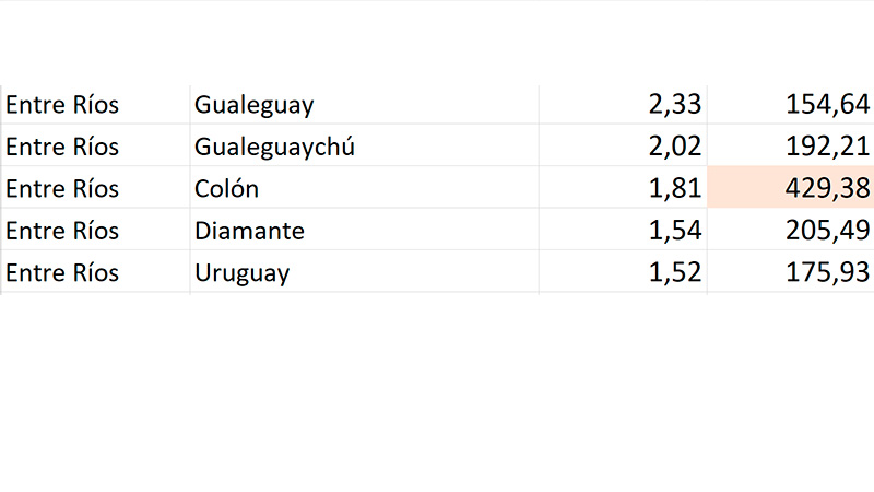 Los departamentos entrerrianos con alto riesgo epidemiológico son Colón, Diamante, Uruguay, Gualeguay y Gualeguaychú.