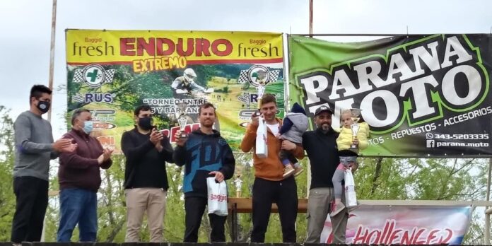 GANADORES POR CATEGORÍA. Seniors Open: Diego Guionet (de Colón), con KTM 350. Seniors B: Cristian Bournissent (Aldea Spatzenkutter), KTM 350. Masters A: Juan Carlos Palacios (Paraná), CRF 450. Masters B: Miguel Rodríguez (Concepción del Uruguay), Beta 300. Masters C: Marcelo Sanfilippo (Paraná), KDX 200. Juniors Limitada: Milton Espíndola (Paraná), Tornado 250. Promocional: Nahuel Bruno (Las Tunas), CR 250. Enduro Calle hasta 300cc: Matías Torres (Paraná), Tornado 250. Enduro Calle Mayores de 45 Años: Carlos Cinquini (Hernandarias), TTR 230. Enduro Calle hasta 150cc: Matías Zatti (Viale), XR 150. Damas: Daiana Morales (Paraná), Tornado 250.