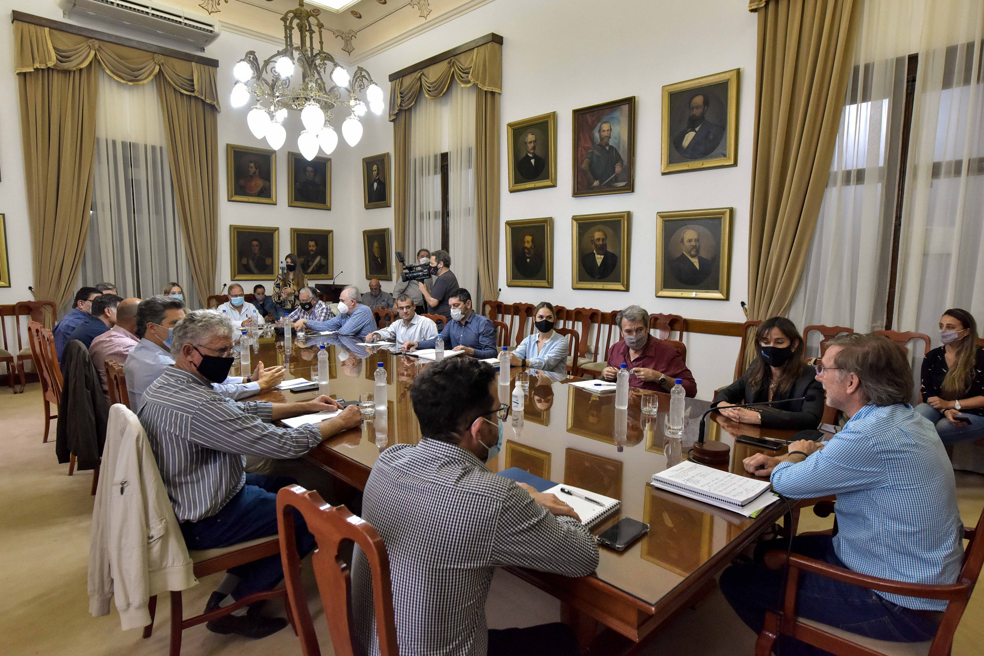 En el encuentro que se desarrolló este lunes a la tarde en el Salón de los Gobernadores de Casa de Gobierno, en el marco del espacio de diálogo permanente que construyen representantes de los sectores públicos y privados para debatir proyectos que sirvan al desarrollo del sector productivo, donde también se trabajó sobre la conformación de la Mesa Provincial de la Carne y el análisis de la oferta financiera disponible para el agro, entre otros temas.