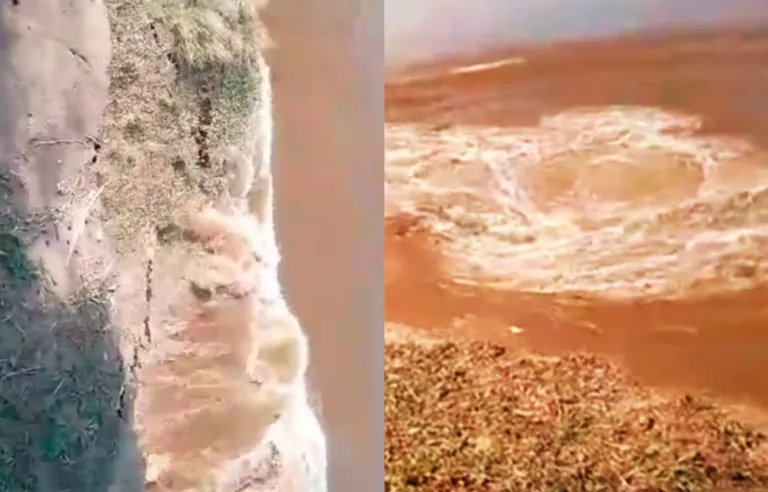 Se puede ver el momento exacto en el que una grieta enorme se formó sobre una de las orillas del río Paraná. Posteriormente, empezó a ceder la tierra y se la llevó al agua.