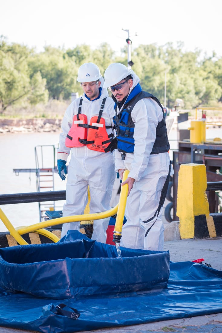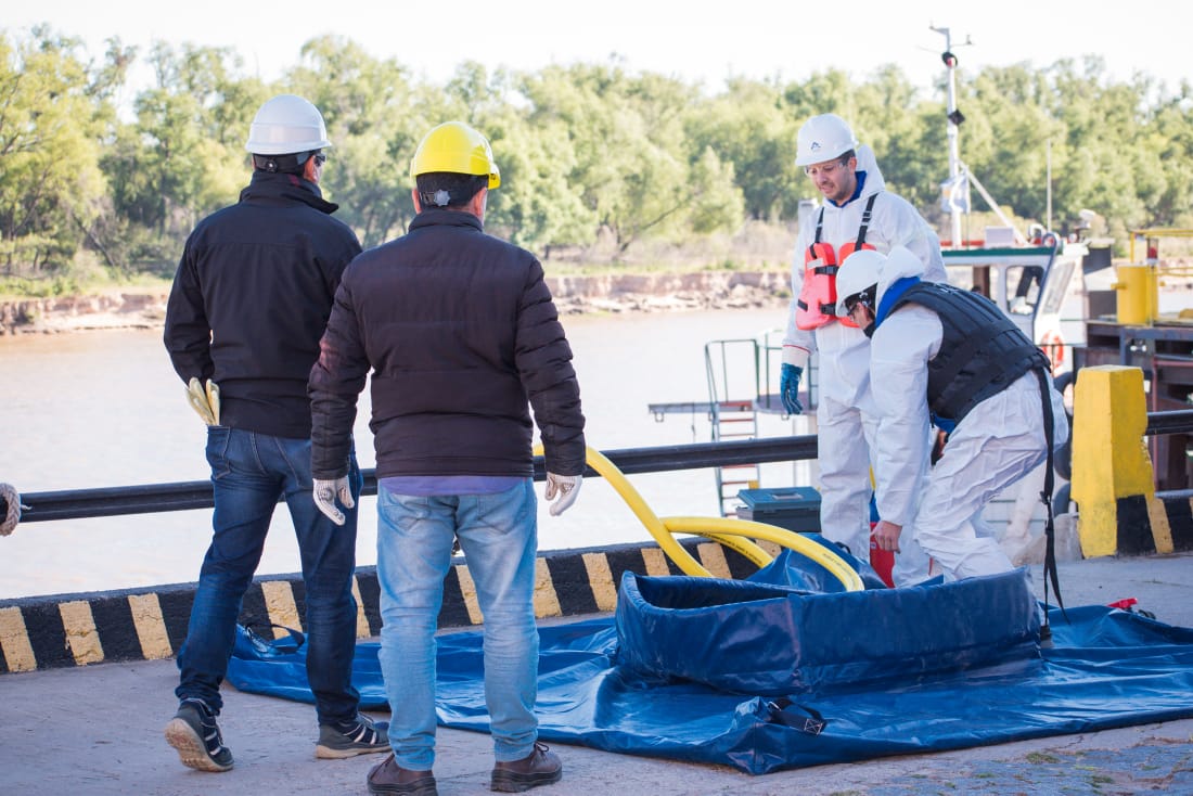 Durante el simulacro la PNA evaluó la aplicación del Plan de Contingencias del puerto con el fin de garantizar la lucha contra la contaminación por sustancias nocivas y/o peligrosas.