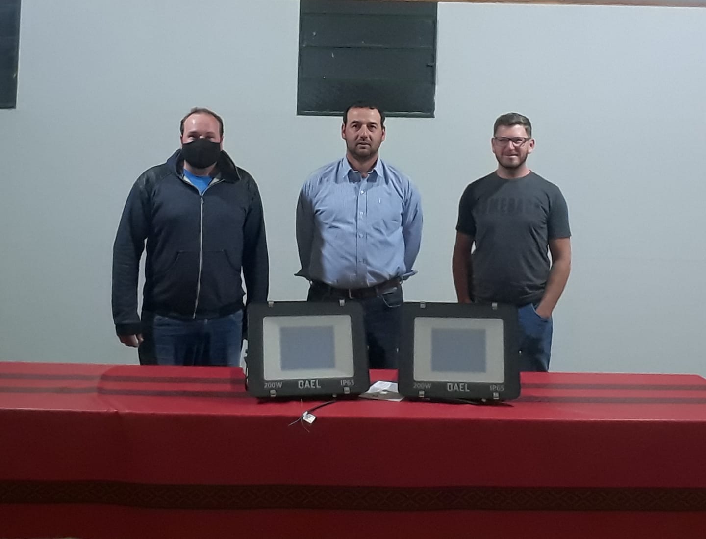 En este caso, entregaron dos proyectores LED 200w a la Comisión Directiva de la Capilla, San Lorenzo Justiniano. Los mismos estarán destinados a la iluminación de la cancha de fútbol.