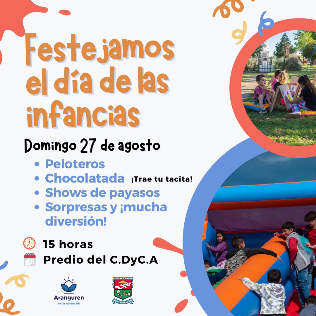 Este domingo 27 de agosto se festejará el Día de las Infancias en Aranguren. Será desde las 15, en el predio del Club Deportivo y Cultural de esa ciudad.