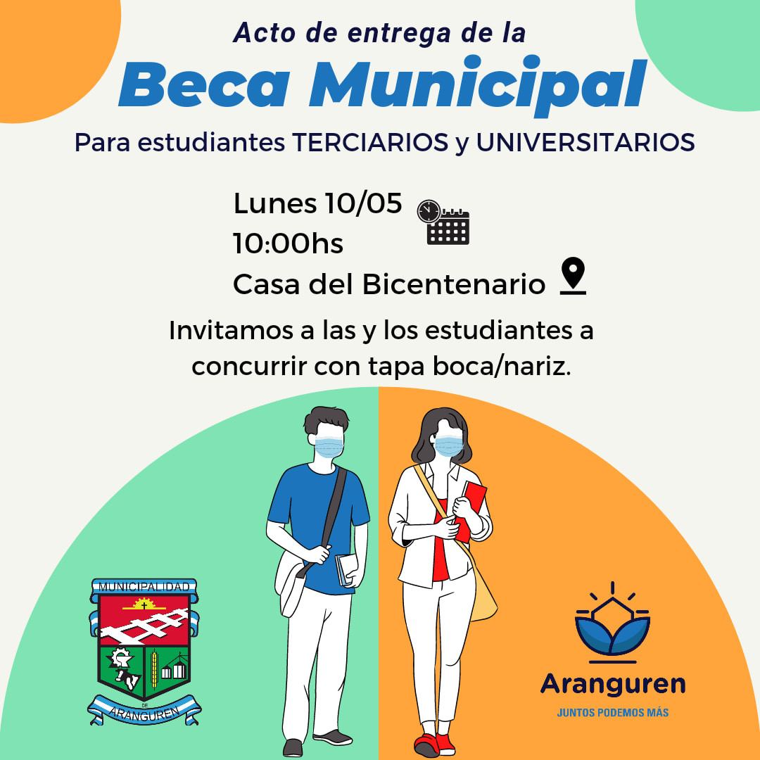 Este lunes 10 a las 10, en la Casa del Bicentenario de Aranguren se realizará un acto de entrega de becas municipales a estudiantes terciarios y universitarios de la ciudad.