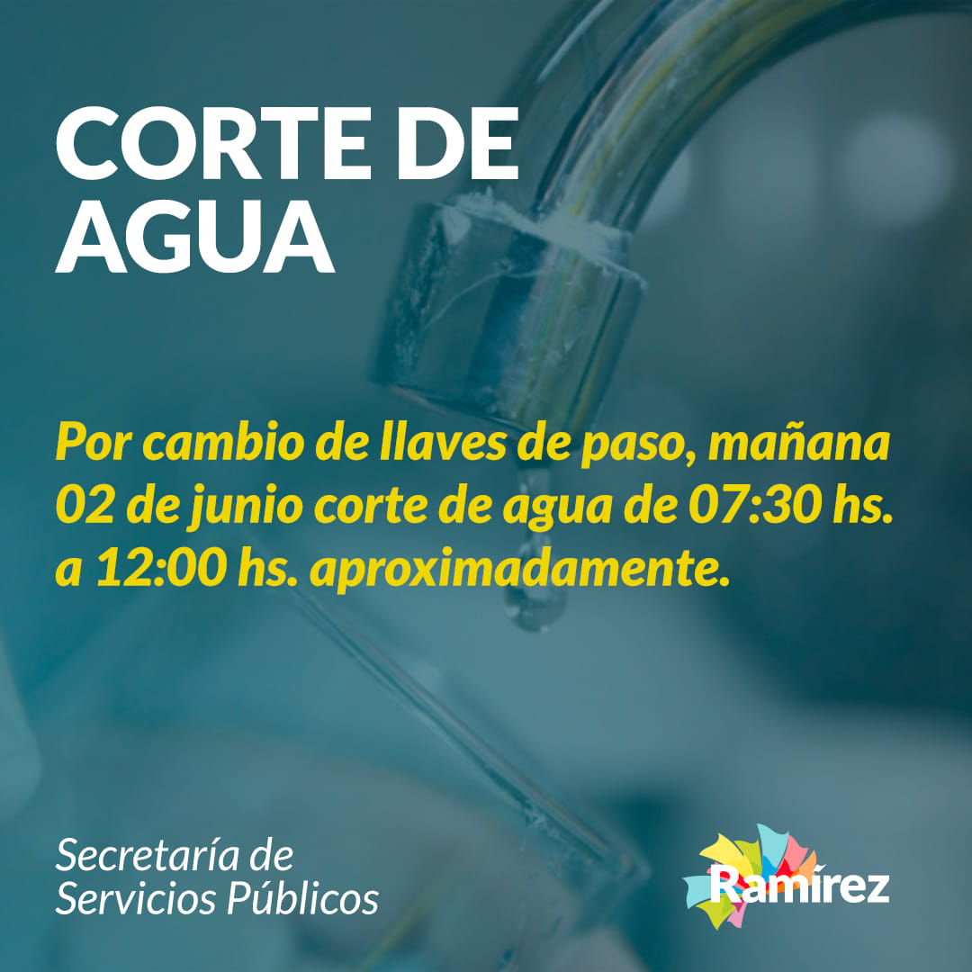 Este miércoles por la mañana habrá un corte de agua programado en General Ramírez. Será entre las 7.30 y las 12.00 aproximadamente.