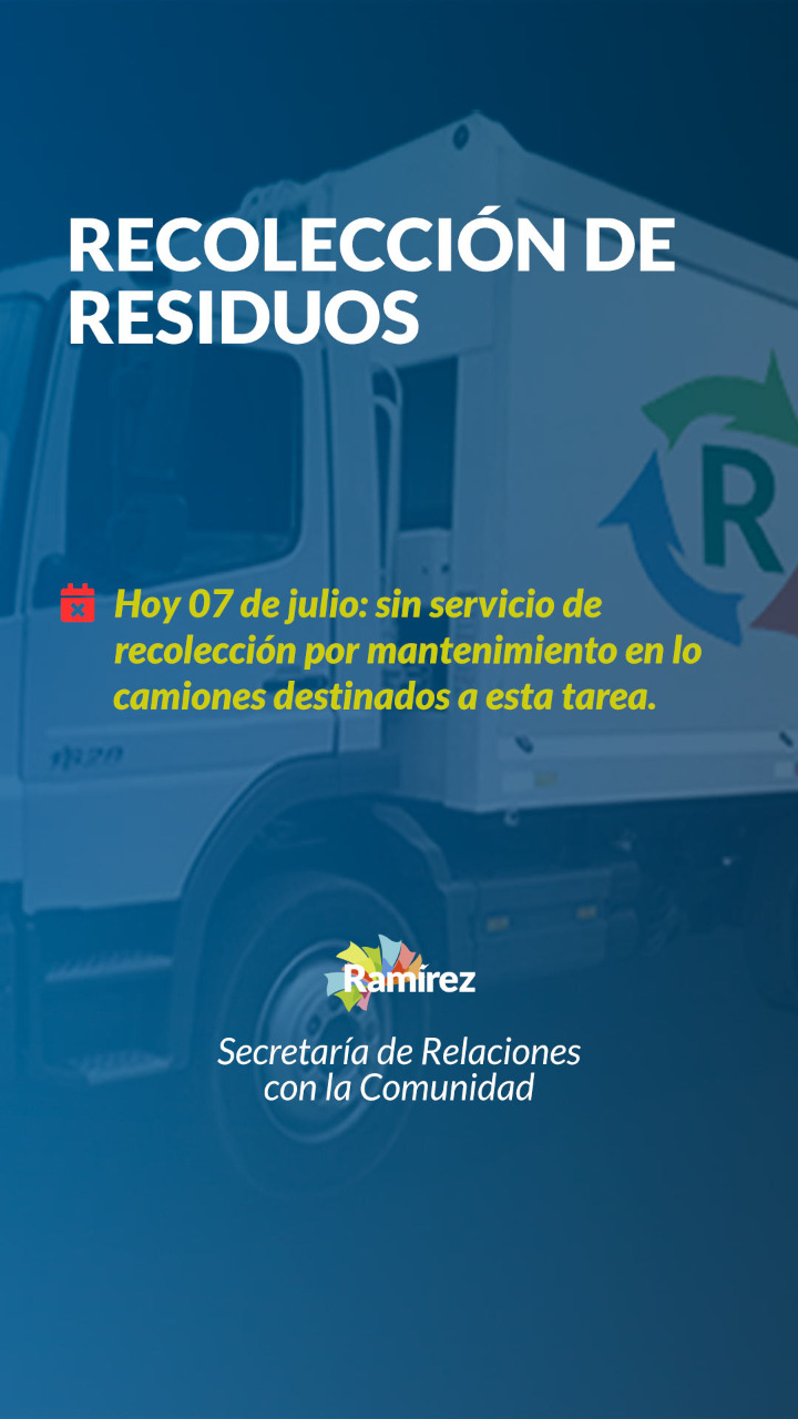 Este miércoles 7 de julio no se realizará la recolección de residuos domiciliarios en General Ramírez.