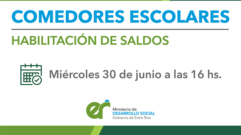 Desde la Dirección de Comedores, dependiente de la Subsecretaría de Políticas Alimentarias del Ministerio de Desarrollo Social, se informó que este miércoles 30 de junio se acreditan los fondos de comedores correspondientes a la partida del mes de julio.