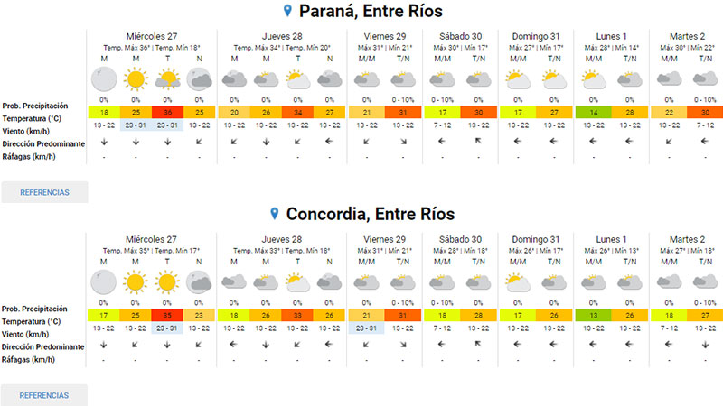 Para esta tarde en Paraná y la zona pronostican 36 grados. Sería el día más caluroso de la semana, puesto que mañana, habría mayor nubosidad, lo que haría que la máxima sea levemente inferior.