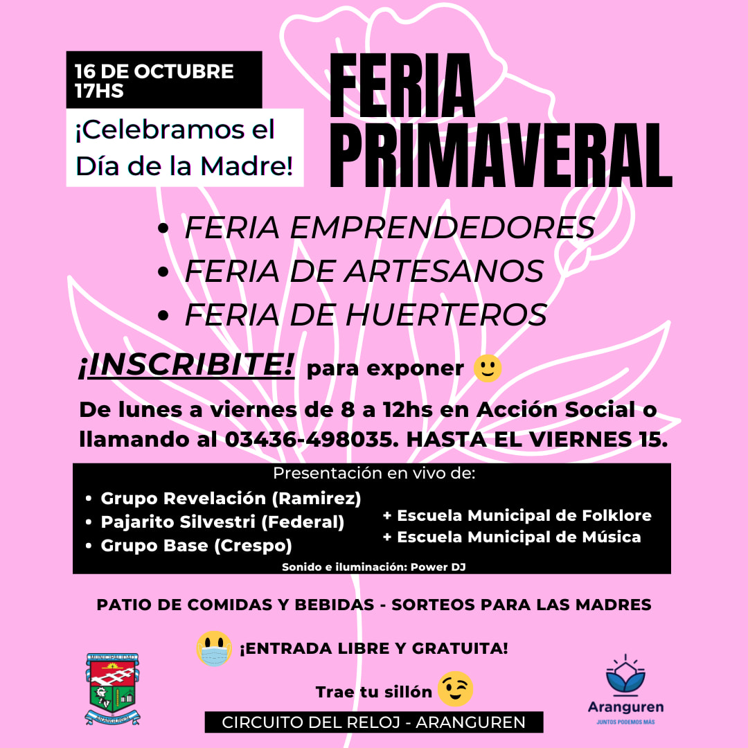 Quienes quieran exponer en la feria tienen tiempo de inscribirse hasta el viernes 15 de 8 a 12 en Acción Social de la Municipalidad de Aranguren o llamando al 03436-498035.